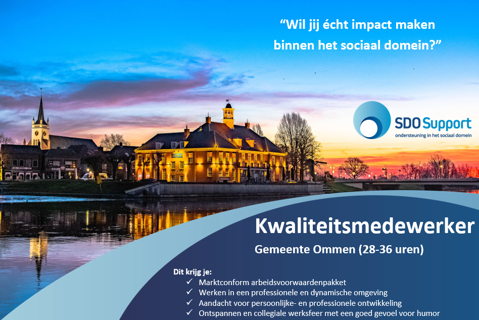 Kennis en ervaring, gecombineerd met boerenverstand en Twentse nuchterheid: dát is SDO Support! We onderscheiden ons in de markt door onze brede kennis en de hoge kwaliteit die we leveren. Onze mensen vormen ons kapitaal en maken het verschil. Voor een aantal gemeenten in Nederland nemen wij (onderdelen van) de uitvoering in het sociaal domein over, waaronder voor gemeente Ommen. Voor deze gemeente voeren wij per 1 januari 2025 alle taken in de front- en backoffice sociaal domein in zijn geheel uit. Als kwaliteitsmedewerker sociaal domein werk je dus voor/via een bedrijf uit Enschede, maar je fysieke standplaats is gemeente Ommen.